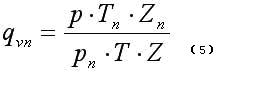式中,qVn、qV分別為標準狀態(tài)下(0℃或20℃,101.325kPa)和工況下的體積流量; Pn、P分別為標準狀態(tài)下和工況下的絕對壓力;Tn、T分別為標準狀態(tài)下和工況下的熱力學溫度;Zn、Z分別為標準狀態(tài)下和工況下氣體壓縮系數(shù)。