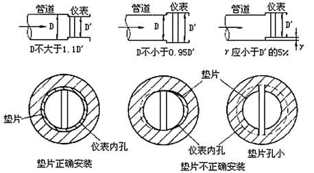③ 密封墊不能凸入管道內(nèi),其內(nèi)徑可比傳感器內(nèi)徑大1~2mm;