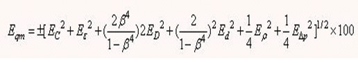 (1)式中;Eqm-流量相對(duì)不確定度,% ;EC,Eε,ED,Ed,Eρ,EΔp-分別為C,ε,D,d,ρ,Δp的相對(duì)不確定度,%;β-直徑比,無(wú)量綱。