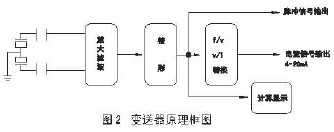 當旋渦在柱體兩側產生時候,傳感器受到與流向垂直的交變升力的作用感生信號,升力的變化頻率是旋渦頻率,傳感器將信號送轉換器放大整形后得到與流速成線性比例的脈沖信號直接輸出或將其轉換成4~20mA標準信號輸出,流量Q與頻率f的關系如下: 式中:Q=瞬時體積流量(升/秒) f-頻率(Hz) k-儀表常數(次/升)