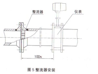 安裝條件:渦街流量計(jì)應(yīng)遠(yuǎn)離振動源,有振動時在前后直管段2DN處加支架用橡皮減振。傳感器通徑圓應(yīng)與直管段內(nèi)徑圓保持同心。法蘭焊接時,密封夾緊時,管內(nèi)不得有突出部分。流向應(yīng)與箭頭方向一致。(高溫時推薦2、3、4位置,常溫和低溫時推薦1位置,垂直管道時選3位置)見圖6