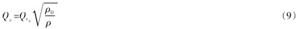 0引言 轉(zhuǎn)子流量計是常用的節(jié)流式流量計之一,具有結(jié)構(gòu)簡單、制造容易、測量范圍寬(量程比可達 10:1)、測量精度較高(誤差±5%左右)、示值直觀、維護方便、壓損小等優(yōu)點,是現(xiàn)代生活和工業(yè)生產(chǎn)中應(yīng)用廣泛的計量器具。 在計量技術(shù)水平日益發(fā)展、測量精度需求不斷提高的今天,計量工作者只有全面了解轉(zhuǎn)子流量計的結(jié)構(gòu)原理、流量計算、量值影響因素與修正方法、以及流量計的選型、安裝要求,才能選出符合需求的計量儀表,實現(xiàn)測量效果。希望本文給計量工作者帶來些許幫助。 1轉(zhuǎn)子流量計結(jié)構(gòu)原理簡析 1.1 結(jié)構(gòu)分析 轉(zhuǎn)子流量計由兩部件組成, 一是從下向上逐漸擴張的錐形管,二是置于錐形管中,可沿管中心線上下移動、密度比流體稍大的轉(zhuǎn)子(圖1 轉(zhuǎn)子流量計原理圖)。 錐形管由玻璃、塑料或金屬材質(zhì)制成。 玻璃或塑料材質(zhì)的錐形管上刻有流量刻度,透過錐管可看到透明流體中轉(zhuǎn)子的位置及所對應(yīng)的刻度值; 金屬材質(zhì)錐形管中轉(zhuǎn)子位置通過磁性耦合等方式傳遞管外,在面板上顯示量值。 1.2 工作原理 當測量流體的流量時,流體從錐形管下端流入沖擊轉(zhuǎn)子,對它產(chǎn)生一個作用力,力的大小隨流量大小而變化;當流量足夠大時,所產(chǎn)生作用力將轉(zhuǎn)子托起,使之升高;流體經(jīng)轉(zhuǎn)子與錐形管壁間的環(huán)形斷面從上端流出。 當流體對轉(zhuǎn)子的作用力等于轉(zhuǎn)子重量時,轉(zhuǎn)子因受力平衡而停留在某一位置;這個位置與流量有相互對應(yīng)的關(guān)系,據(jù)此位置,即可求得流量值。 1.3 流量計算 流量計轉(zhuǎn)子在錐形管中受三個力:重力、動壓力和浮力,三力平衡時,轉(zhuǎn)子重力=動壓力+浮力。 當流速變大或變小時,轉(zhuǎn)子將向上或向下移動,流體流動的截面積也發(fā)生變化,直至達到平衡時對應(yīng)的流速,轉(zhuǎn)子在新的位置上穩(wěn)定。 因此,轉(zhuǎn)子穩(wěn)定時受力關(guān)系公式如下: 其中:ρt-轉(zhuǎn) 子密度 ;ρf- 流 體密度 ;g- 重 力加速度 ;V- 轉(zhuǎn) 子體積 ;△p-轉(zhuǎn)子前后壓差;A-轉(zhuǎn)子最大截面積。 結(jié)合公式(1),并參照孔板流量計流量與節(jié)流壓差間的關(guān)系方程式: 得轉(zhuǎn)子流量計流量公式: 其中:Qv-流量值;a0-流量系數(shù)(與轉(zhuǎn)子形狀、流體狀態(tài)、流量計結(jié)構(gòu)和流體物理性質(zhì)等因素有關(guān), 只能由實驗來確定);A0-環(huán) 隙面積 ,對應(yīng)于轉(zhuǎn)子高度 h;近似有:A0=ch;系 數(shù) c 與轉(zhuǎn)子和錐形管的幾何形狀及尺寸有關(guān);ρt-轉(zhuǎn)子密度;ρf—流體密度;At-轉(zhuǎn)子最大截面積。 流量方程式可寫成: 由公式(4)可知,轉(zhuǎn)子的停浮高度 h 與流量 qv成對應(yīng)關(guān)系;根據(jù)高度的不同來標刻流量值,即可在實際應(yīng)用中即時讀取流量值。 2測量值的流體相關(guān)性修正 2.1 測量值修正分析 從式(4)可知,被測流體的密度不同,流量大小與轉(zhuǎn)子高度之間的對用關(guān)系也不同。 因受標定設(shè)備的限制,生產(chǎn)廠商不可能對所有流量計都做實液標定,故測量非標定介質(zhì)時,應(yīng)對讀出的測量值進行修正,以保證精度。 對于液體,其密度為常數(shù),只需修正被測液體和標定液體不同造成的影響即可;而氣體因具有可壓縮性,還應(yīng)考慮標定狀態(tài)和實際狀態(tài)不同時溫度和壓力的影響。 通常,標定狀態(tài)默認為:溫度 T=293.16K,絕對壓力 p=101325Pa。根據(jù)流量計算公式,進行如下分析: 一方面,設(shè)定在標定狀態(tài)下,測量標定流體的流量公式為: 式中:Qv0-標定狀態(tài)下標定流體的流量示值 ;a0-標定狀態(tài)標定流體的流量系數(shù);ρ0-流體在標定狀態(tài)下的密度。 另一方面,設(shè)定流量計在工作狀態(tài)下,測量被測流體的流量公式為: 式中:Qv-工作狀態(tài)下被測流體的流量示值;a-工作狀態(tài)被測流體的流量系數(shù);ρ-流體在工作狀態(tài)下的密度。 由式(5)和式(6)可以看出,在實際工作狀態(tài)下,被測流體的實際流量為 qv,但轉(zhuǎn)子在高度 h 處,轉(zhuǎn)子流量計的顯示仍然是 qv0。 比較式(5)和式(6),可以得出 Qv和 Qv0之間的關(guān)系,即流量修正公式為: 實驗表明,流量系數(shù) a 與雷諾數(shù) Re 和流量計結(jié)構(gòu)有關(guān),當被測流體的黏度與標定流體的黏度相差不大時,或在流量系數(shù) a 為常數(shù)的流量范圍內(nèi),可不考慮 a 的影響,即可以認為 a=a0,所以(7)式可以簡化為: 若被測流體的黏度相對標定流體的黏度相差較大,則應(yīng)考慮黏度差異對實際流量系數(shù) a 與標定流量系數(shù) a0間的差異,參照式(8)進行修正或進行實際標定,不能簡單地認為 a=a0。 2.2 流體密度修正 2.2.1 液體流量的測量值修正 流量計對液態(tài)類流體的測量示數(shù)通常采用水為參照流體,在標定狀態(tài)下進行標定。 實際測量非水液體流量時,只需修正被測液體和標定液體(水)之間密度差異而造成的影響,即可按(8)式進行修正換算。此時,ρ0為標定流體的密度,ρ 為被測流體的密度。 2.2.2 氣體流量的測量值修正 流量計對氣態(tài)類流體的測量示數(shù)采用空氣為參照物,在標定狀態(tài)下進行標定。由于氣體的密度受溫度、壓力變化的