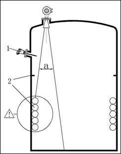 3. 如果罐內(nèi)有(1)(2)干涉物件,應(yīng)采用導(dǎo)波管進(jìn)行測量。